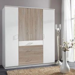Wimex Armoire à portes coulissantes Weimar – Imitation béton / Verre blanc – Largeur : 135 cm