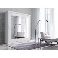 Mooved Armoire à portes coulissantes Sanday – Blanc – Largeur : 180 cm – Avec portes miroir