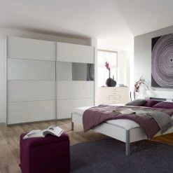 Rauch Blue Armoire à portes coulissantes Lorca – Blanc alpin / Blanc brillant – Largeur : 226 cm