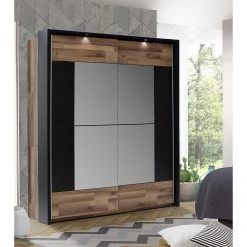 Loftscape Armoire à portes coulissantes Huy – Éclairage intégré – Imitation pin des Alpes / Noir