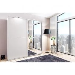 Wimex Armoire à portes coulissantes Bert – Blanc alpin / Imitation chêne parqueté – Largeur : 225 cm
