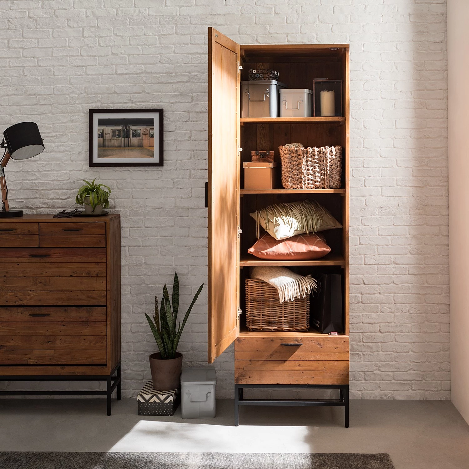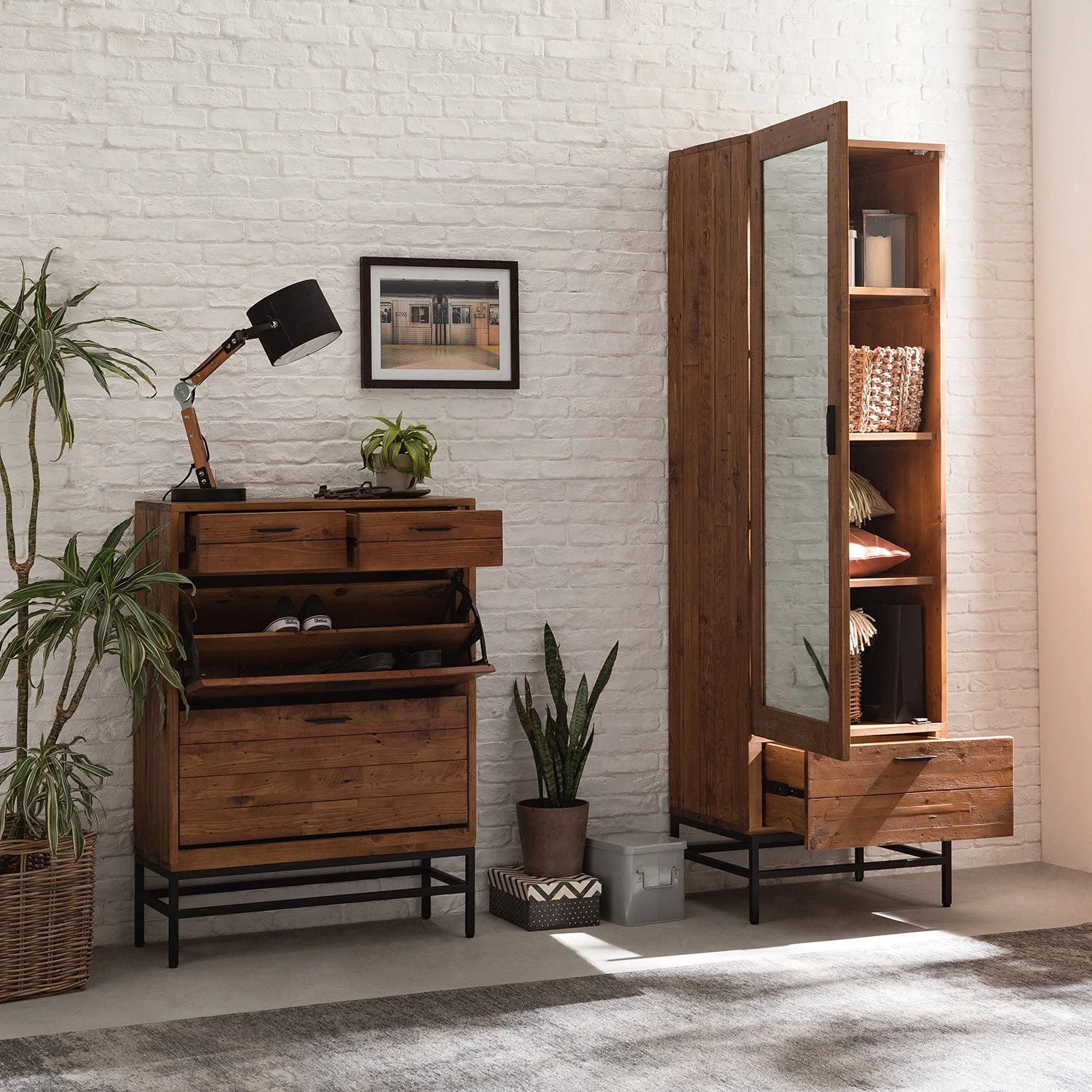 - Façade et corps : pin recyclé verni