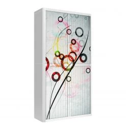 - Forme rectiligne et claire avec motif cercles colorés