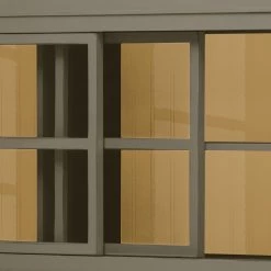 - 4 portes coulissantes en verre et bois, chacune avec 1 tablette