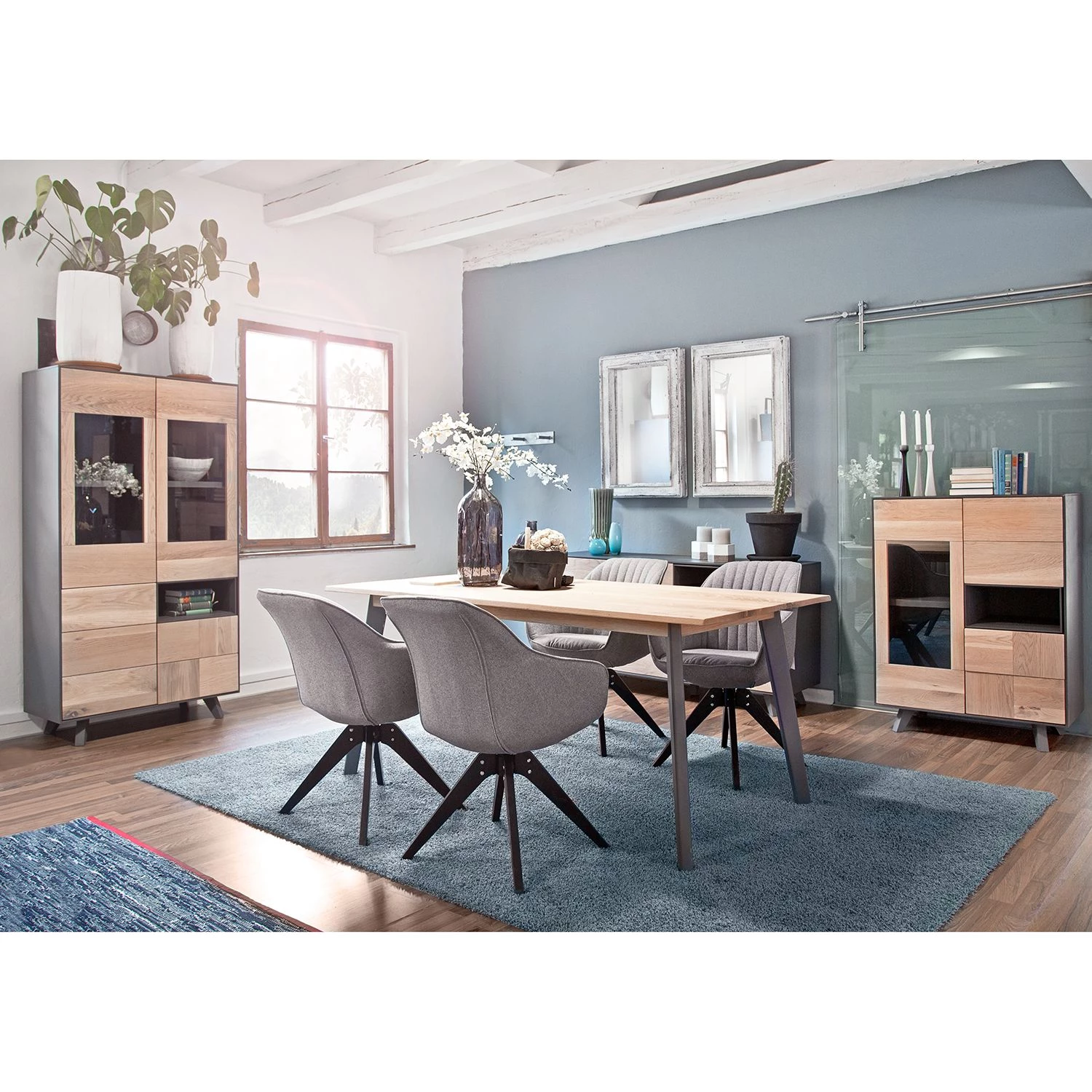 Red Living Vitrine murale Meevoo - Imitation chêne rustique / Graphite
