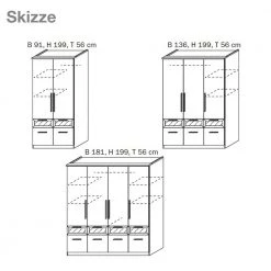 - 4 portes : hauteur : 181 cm; Largeur : 199 cm; profondeur : 56 cm