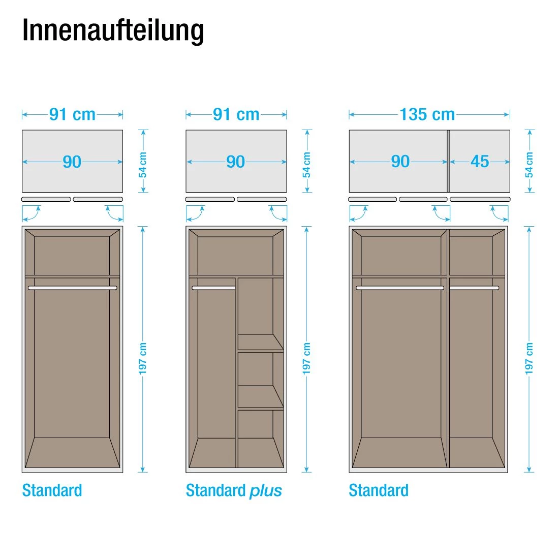 - Standard Plus : 1 tringle à vêtements, 1 étagère continue et 2 petites étagères