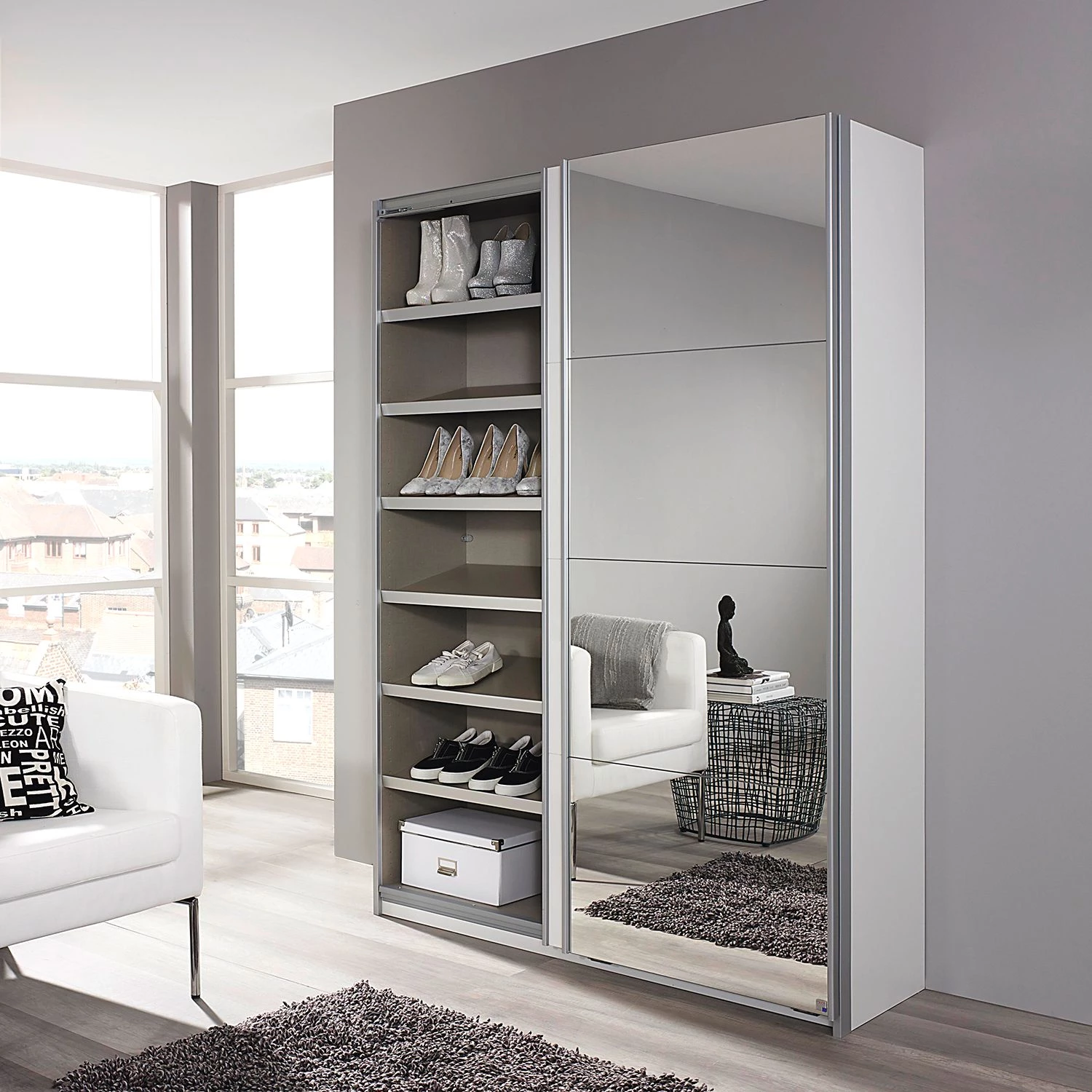 - Contenu de la livraison : armoire à portes coulissantes avec équipement intérieur, sans décoration