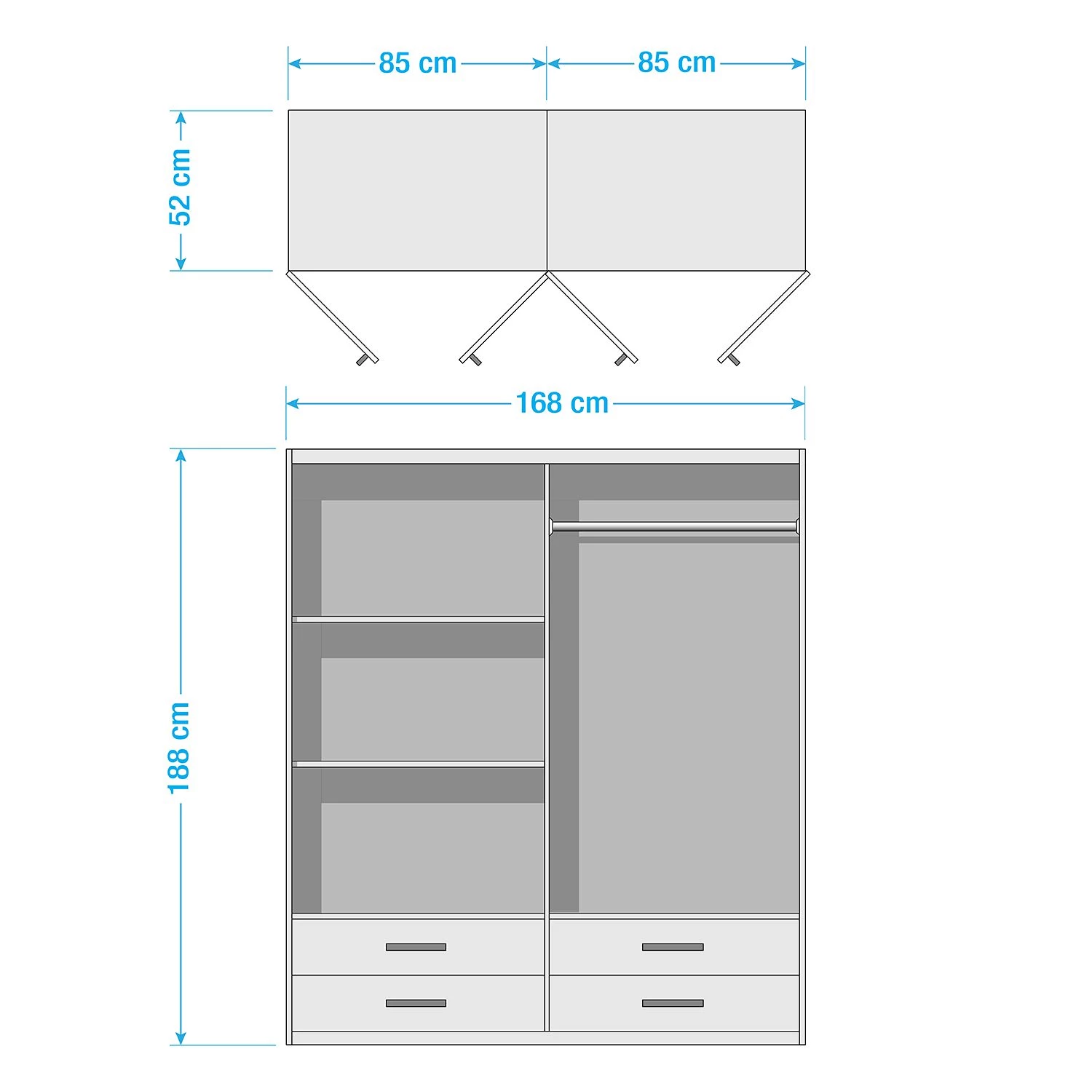 - Contenu de la livraison : armoire à portes battantes avec équipement intérieur, sans décoration