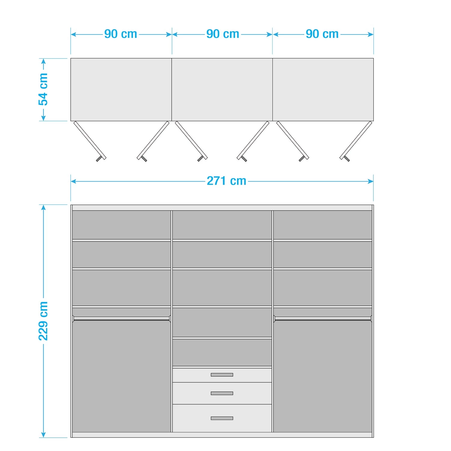 - Tiroir inférieur : 85 x 20 x 39 cm