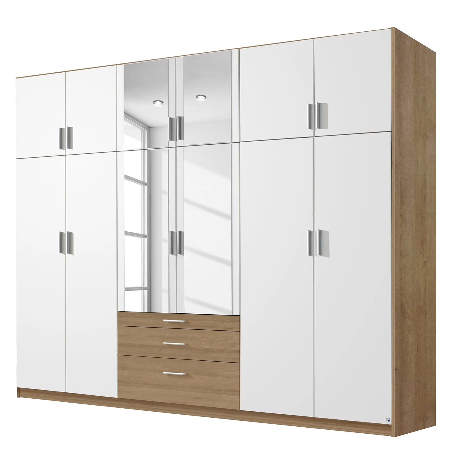- 8 portes en bois, 4 portes avec miroir, 11 étagères et 2 tringles à vêtements