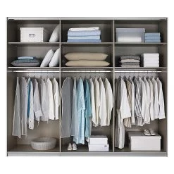 - Hauteur 210 cm : chaque élément d’armoire avec : 1 tablette et 1 tringle à vêtements