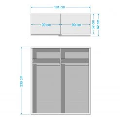 - Hauteur : 230 cm : 2 tablettes et 1 tringle à vêtements par élément d’armoire