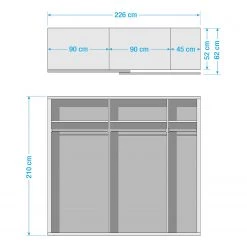 - Hauteur : 230 cm : 2 tablettes et 1 tringle à vêtements par élément d’armoire