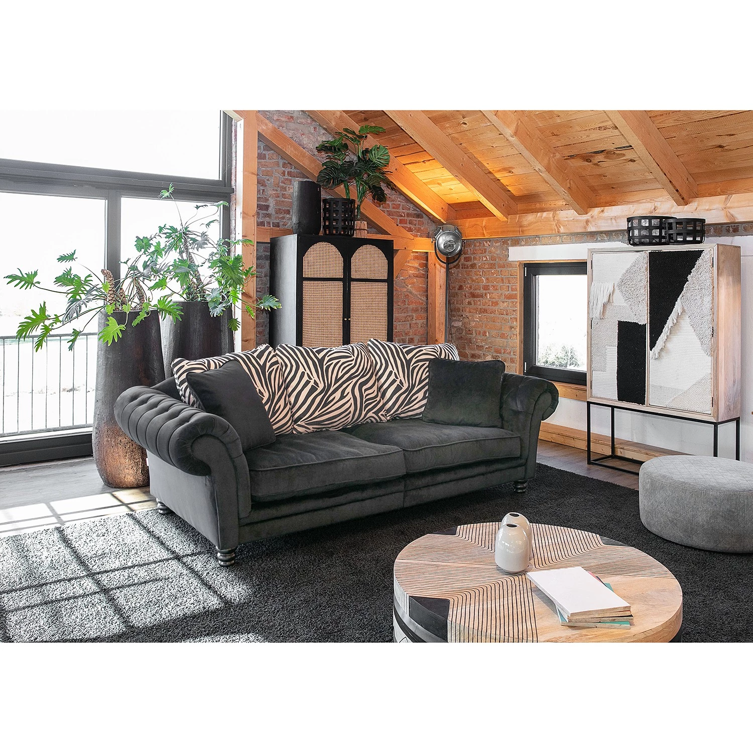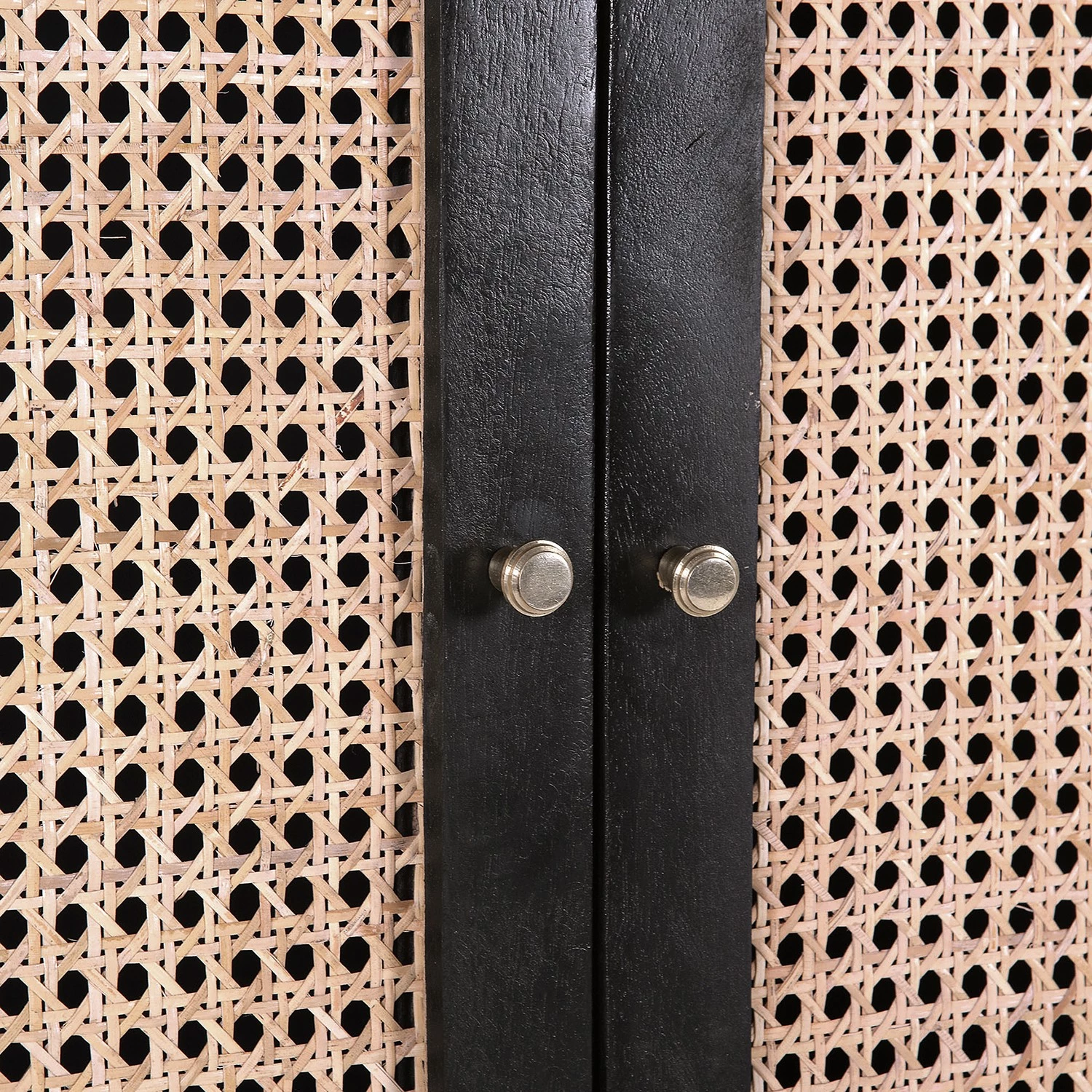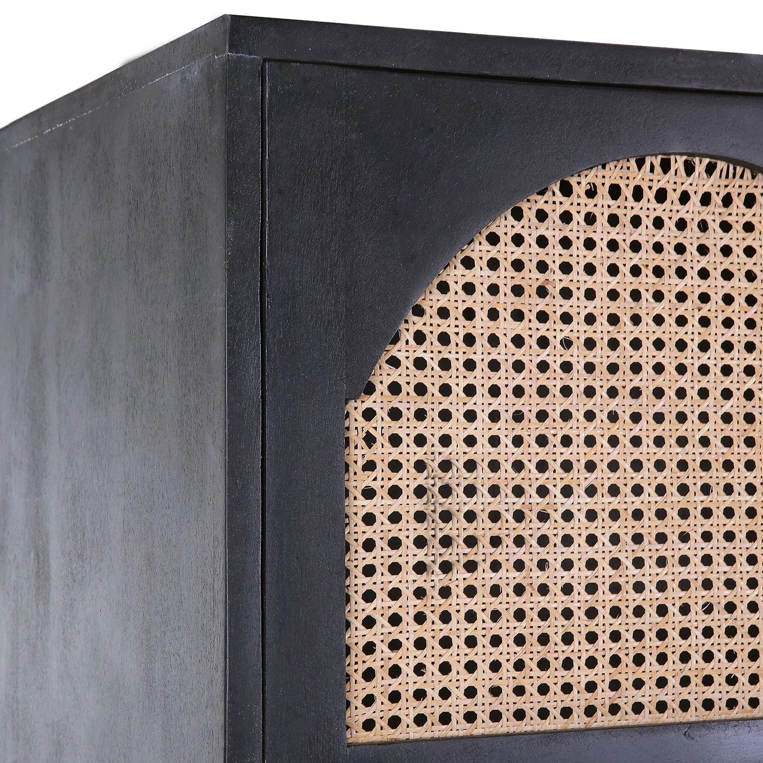 - Façade : cannage en rotin, verni
