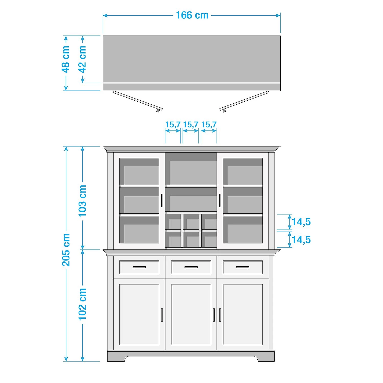 - Autres dimensions : Buffet (L x H x P) : 166 x 102 x 48 cm