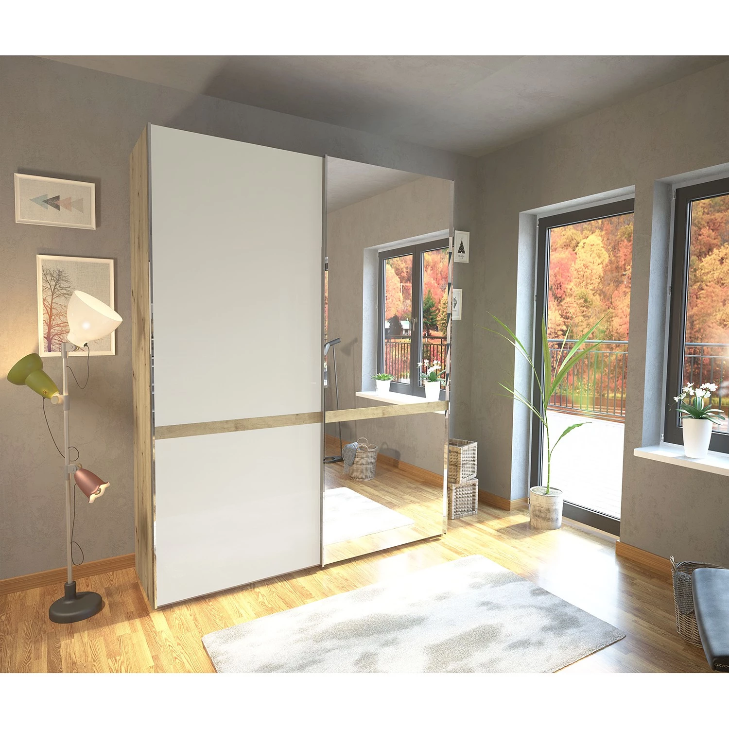 - Contenu de la livraison : Armoire à portes coulissantes avec 4 étagères et 2 tringles à vêtements, sans accessoires
