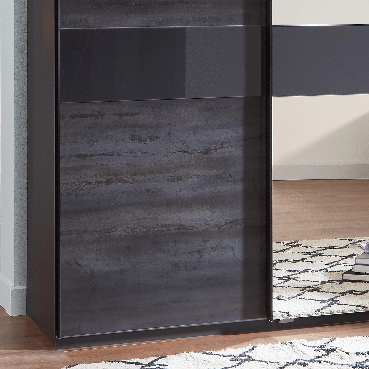 - Façade : imitation métal « digi-steel », éléments en verre gris