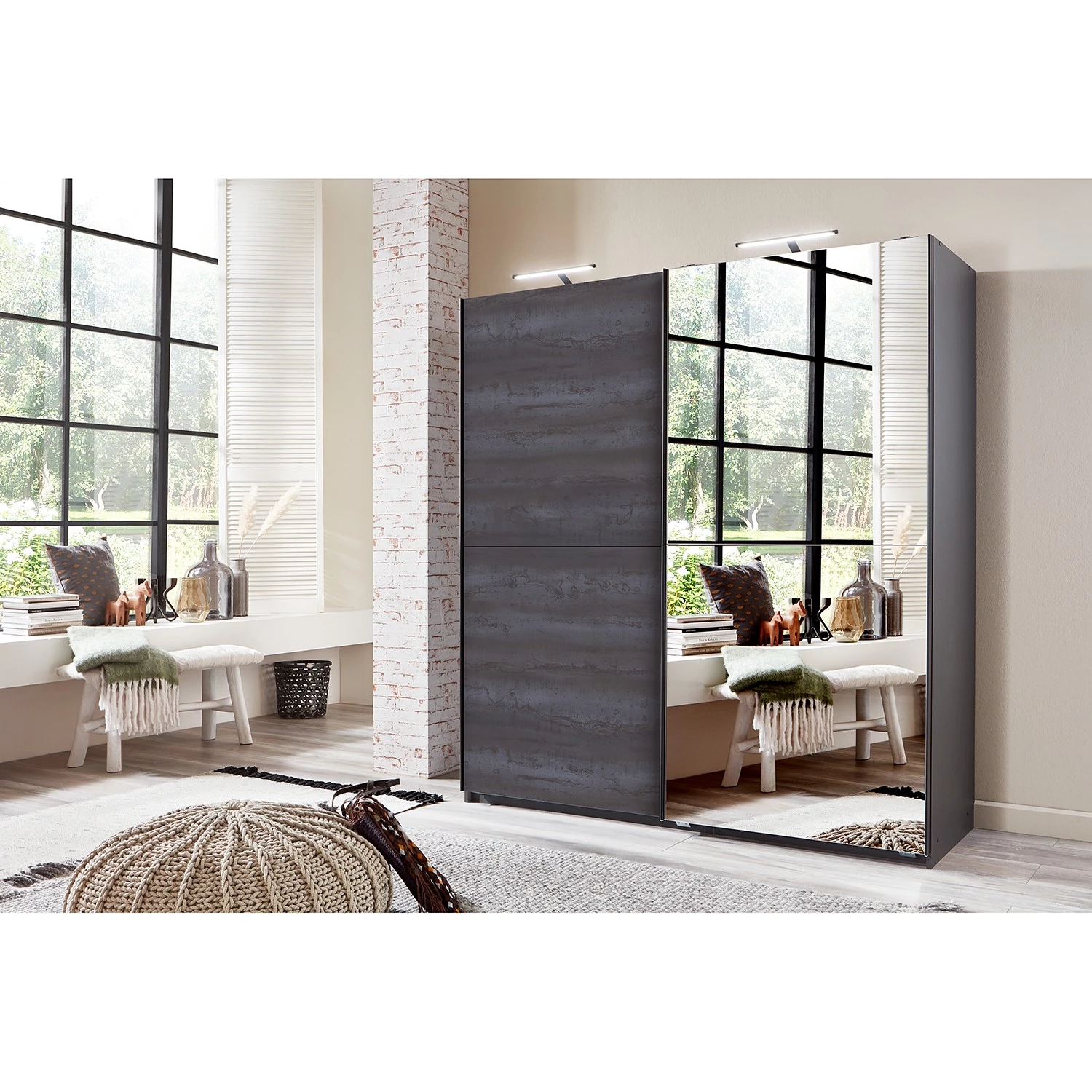 - Contenu de la livraison : Armoire à portes coulissantes avec 2 étagères et 2 tringles à vêtements, sans accessoires