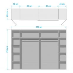 - Contenu de la livraison : Armoire à portes coulissantes avec parties à portes battantes, 10 étagères, 2 tringles à vêtements