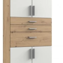 - Tiroirs et éléments décoratifs : imitation chêne artisan